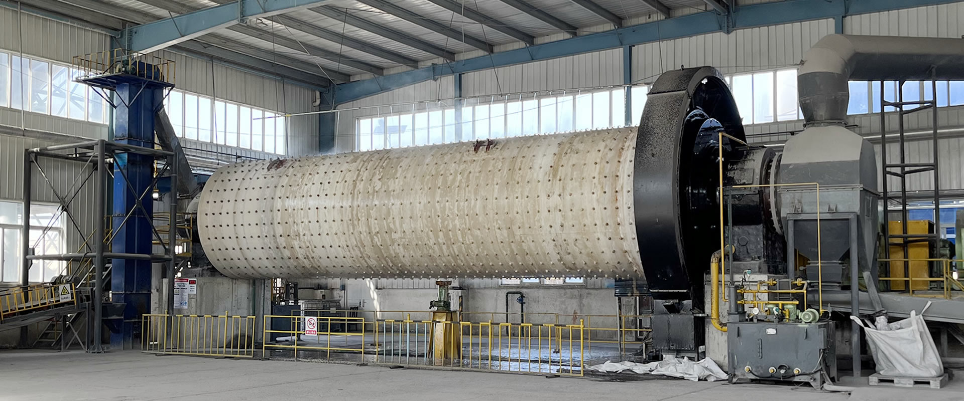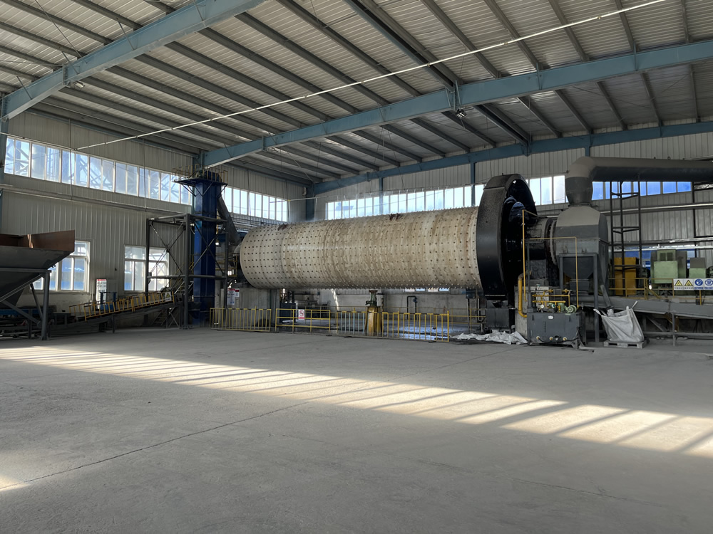 ■久和材料科技有限公司采用常見(jiàn)的φ3.2×13m球磨機(jī)(電機(jī)功率1600kw),采用開(kāi)路粉磨工藝生產(chǎn)超細(xì)復(fù)合粉臺(tái)時(shí)產(chǎn)量可達(dá)40~50t,年產(chǎn)能20~30萬(wàn)噸;噸產(chǎn)品綜合電耗在40度以下。